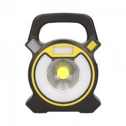 Naświetlacz przenośny PAMIR LED przeznaczony jest do oświetlenia prac wykonywanych na zewnątrz oraz w domu, garażu, piwnicy, samochodzie czy na kempingu, itp. Wyposażony jest w dwa niezależne źródła światła - nowoczesną diodę LED COB oraz 12 ultra jasnych diod LED, które świecą z mocą 5W i emitują światło w ilości 300 lm. Naświetlacz może również emitować migające światło ostrzegawcze w kolorze pomarańczowym. Główny reflektor świeci światłem o zimnej barwie 6000K, które dobrze sprawdza się w pomieszczeniach przeznaczonych do pracy, ponieważ jest wyraziste i dobrze oddaje kolory. Dodatkowo naświetlacz posiada 2 wbudowane akumulatory litowo-jonowe o łącznej pojemności 2400 mAh oraz ładowarkę USB, dzięki której naświetlacz można wykorzystywać jako power bank do ładowania innych urządzeń na przykład na kempingu. Urządzenie pracuje w 5 różnych trybach: mocne światło/średnie światło/słabe światło/SOS/Power Bank. Wyjście ładowarki USB: 5VDC/1A. Stopień ochrony IP44 gwarantuje wystarczającą ochronę naświetlacza przed drobinkami kurzu i wodą chlapiącą pod każdym kątem.