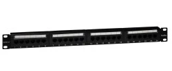 Panele krosowe nieekranowane EmiterNet kat. 5e zbudowano w oparciu o moduły PCB 8 portowe z oznaczeniem kolorowym (568A/B), z frontowymi oznacznikami portów. W komplecie znajduje się zestaw śrub montażowych, krawatki kablowe oraz instrukcja instalacji. Panel posiada uchwyt montażowy w komplecie (półkę), który ułatwia organizację kabla. Standard 19", wysokość 1U - panel 24 portowy. Panel w kolorze czarnym.