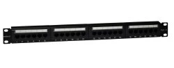 Panele krosowe nieekranowane EmiterNet kat.6 zbudowano w oparciu o moduły PCB 8 portowe z oznaczeniem kolorowym (568A/B), z frontowymi oznacznikami portów. W komplecie znajduje się zestaw śrub montażowych, krawatki kablowe oraz instrukcja instalacji. Panel posiada uchwyt montażowy w komplecie (półkę), który ułatwia organizację kabla. Standard 19", wysokość 1U - panel 24 portowy. Panel w kolorze czarnym.