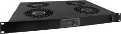 Nazwa: Panel 4 wentylatorów z termostatem RACK 1U Przeznaczenie Panel przeznaczony do montażu w profilach RACK szafy RACK-owej. Wymusza on obieg powietrza wewnątrz szafy pomiędzy urządzeniami (np. rejestrator). Panel posiada rozłączny przewód 230VAC oraz rozłączny czujnik temperatury. Zasilanie 230 V AC Wymiary montażowe 19" x 1U x 314mm montaż doczołowy, w komplecie 4 śruby M6 + koszyki Wymiary 482 x 44 x 314 [+/-2 mm] Przewód Zasilanie AC: 2m Wentylator 4x 50÷110 CBM/H - 230V AC Wykonanie blacha DC01, 1.2mm, RAL9004 (czarny), metalowa Gwarancja 2 lata Uwagi - programowanie progów temperatury włączenia wentylacji oraz jej wyłączenia -40°C÷50°C - cyfrowy wskaźnik bieżącej temperatury - wyłącznik zasilania na panelu czołowym