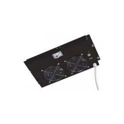 - Jednostka wentylacyjna złożona z 2 wentylatorów z termostatem, do zamocowania w suficie szafy rack 19”
