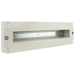 Panel dystrybucji napięć, standardowo wyposażony w szynę TS-35 oraz osłonę z otworem przeznaczony do montażu w szafach RACK 19" aparatury modułowej.