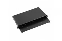 Panel krosowy FO bez płyty czołowej 19'' 1U, wysuwany, dławnica PG13.5 i PG16, opaski/uchwyty, czarny