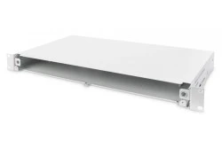DIGITUS Panel krosowy światłowodowy bez płyty czołowej 19'' 1U, wysuwany, dławnica PG13.5 i PG16, opaski/uchwyty, szary