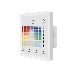 Panel LED naścienny marki Skydance to wysokiej jakości sterownik LED dedykowany dla instalacji składającej się z dla wielokolorowego oświetlenia LED ze zmienną temperaturą barwową (np. taśma LED RGB+CCT). Panel do LED T15-S pozwala na płynną kontrolę poprzez włączanie/wyłączanie, ściemnianie/rozjaśnianie, zmianę koloru z wykorzystaniem palety barw RGB oraz regulowanie temperatury barwowej CCT w zakresie 2700-6500K przy użyciu precyzyjnie działających dotykowych pól. Produkt z przeznaczeniem dla jednej strefy z wykorzystaniem bezprzewodowej drogi radiowej. Urządzenie nadawcze T15-S cechuje się w głównej mierze wysoką jakością wykonania oraz eleganckim wykończeniem.