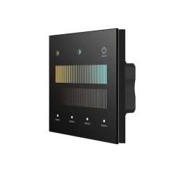Jednostrefowy panel naścienny umożliwiający zarządzanie jasnością oraz temperaturą barwową w zakresie 2700-6500K dla taśmy LED CCT, za pomocą sygnału opartego na systemie sterowania DALI. Urządzenie zasilane bezpośrednio ze stacji DALI, przez co nie potrzebuje dodatkowego zasilania ze strony baterii czy sieci 230VAC. Sterownik można również zasilić korzystając z napięcia znamionowego o wartości 24VDC. Dostępne przyciski obrotowe na obudowie sterownika DALI umożliwiają ustalenie dowolnego adresu w przedziale od 0 do 64 oraz dowolnego grupy od 1 do 15. Urządzenie charakteryzuje się również dodatkową formą komunikacji, jaką jest droga radiowa oparta na częstotliwości 2,4Ghz.