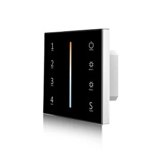 Panel LED naścienny marki Skydance to wysokiej jakości sterownik LED dedykowany dla instalacji składającej się z oświetlenia LED ze zmienną temperaturą barwową (np. taśma LED CCT). Panel do LED T12-1 pozwala na płynną kontrolę poprzez włączanie/wyłączanie, ściemnianie/rozjaśnianie oraz zmianę temperatury barwowej w zakresie 2700-6500K oświetlenia LED przy użyciu precyzyjnie działających dotykowych pól. Produkt z przeznaczeniem dla czterech stref z wykorzystaniem bezprzewodowej drogi radiowej. Urządzenie nadawcze T12-1 cechuje się w głównej mierze wysoką jakością wykonania oraz eleganckim wykończeniem.
