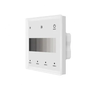 Panel LED naścienny marki Skydance to wysokiej jakości ściemniacz LED dedykowany dla instalacji składającej się z monochromatycznego oświetlenia LED (np. taśma LED MONO - jednokolorowa). Panel do LED TD1-S zarządza instalacją LED za pomocą sygnału opartego na systemie sterowania DALI. Produkt zasilany jest bezpośrednio ze stacji DALI, przez co nie potrzebuje dodatkowego zasilania ze strony baterii czy sieci 230VAC. Produkt z przeznaczeniem dla jednej strefy z wykorzystaniem obrotowych przycisków sterownika DALI, które pozwalają na ustalenie dowolnego adresu w przedziale od 0 do 64 oraz dowolnego grupy od 1 do 15. Urządzenie nadawcze TD1-S cechuje się w głównej mierze wysoką jakością wykonania oraz eleganckim wykończeniem.