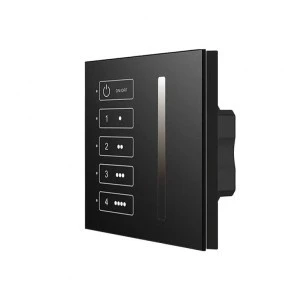 Panel LED naścienny marki Skydance to wysokiej jakości ściemniacz LED dedykowany dla instalacji składającej się z monochromatycznego oświetlenia LED (np. taśma LED MONO - jednokolorowa). Panel do LED TL4-1D zarządza instalacją LED za pomocą sygnału opartego na systemie sterowania DALI. Produkt zasilany jest bezpośrednio ze stacji DALI, przez co nie potrzebuje dodatkowego zasilania ze strony baterii czy sieci 230VAC. Produkt z przeznaczeniem dla czterech stref z wykorzystaniem obrotowych przycisków sterownika DALI, które pozwalają na ustalenie dowolnego adresu w przedziale od 0 do 64 oraz dowolnego grupy od 1 do 15. Urządzenie nadawcze TL4-1D cechuje się w głównej mierze wysoką jakością wykonania oraz eleganckim wykończeniem.