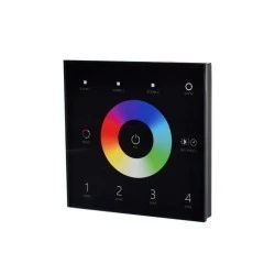 Panel LED naścienny marki Skydance to wysokiej jakości sterownik LED dedykowany dla instalacji składającej się z wielokolorowych instalacji LED z dodatkową barwą białą RGB+W (np. taśma LED RGBW). Panel do LED T14 pozwala na płynną kontrolę poprzez włączanie/wyłączanie, ściemnianie/rozjaśnianie oraz wybór odpowiedniego koloru z palety barw RGB oświetlenia LED przy użyciu precyzyjnie działających dotykowych pól. Produkt z przeznaczeniem dla czterech stref z wykorzystaniem bezprzewodowej drogi radiowej. Urządzenie nadawcze T14 cechuje się w głównej mierze wysoką jakością wykonania oraz eleganckim wykończeniem.