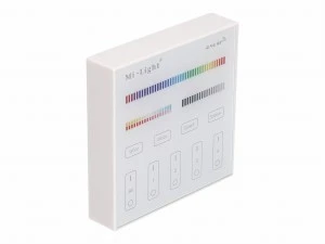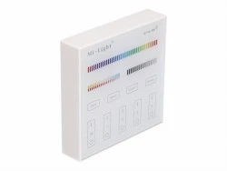 Pilot naścienny B4 Mi-Light jest urządzeniem przeznaczonym do obsługi wszystkich produktów Mi-Light. Pilot naścienny pozwala na płynną regulację jasności, koloru światła, saturacji oraz temperatury barwowej światła białego. Komunikacja z produktami odbywa się bezprzewodowo. Urządzenie zasilane jest bateryjnie 3 x AAA, przeznaczone do instalacji natynkowej za pomocą dołączonej taśmy dwustronnej lub śrub.