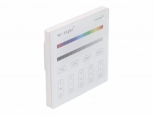 Panel naścienny T3 Mi-Light jest urządzeniem przeznaczonym do obsługo produktów seri Color. Panel naścienny pozwala na płynną regulację jasności, koloru światła oraz temperatury barwowej światła białego. Komunikacja z produktami odbywa się bezprzewodowo. Urządzenie zasilane jest sieciowo AC180~240V, przeznaczone do instalacji w puszcze podtynkowej o średnicy 60mm.