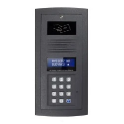 Panel domofonu systemu ELFON Optima przeznaczony do WIELOWEJŚCIOWEJ instalacji domofonowej z wejściami nadrzędnymi MASTER (furtki w ogrodzeniu) i podrzędnymi SLAVE (wejścia do bloków).