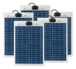 Wszystkie nasze półaktywne panele będą się zginać tylko od TOP (mają kable i logo) do dołu maksymalnie 10% długości panelu.Wygięcie panelu wyżej niż lub próba zgięcia panelu od lewej do prawej strony może spowodować uszkodzenie panelu, a także unieważnienie gwarancji. Panel słoneczny RS Pro PV Logic Flexi. Panel słoneczny PV Logic Flexi, pochodzący z zaufanej marki RS Pro, jest dobrze przystosowany do użytku w miejscach, gdzie potrzebny jest wyjątkowo wytrzymały, niskoprofilowy i lekki panel lub w których podłoże będzie zamocowane na stałe, ma niewielką krzywiznę. Idealny do boi morskich, pokładów łodzi i furgonetek kempingowych. Każdy panel jest zmontowany w celu zapewnienia pełnej enkapsulacji. Dzięki temu 6-warstwowy laminat o dużej wytrzymałości chroni obwód ogniwa słonecznego przed ekstremalnymi warunkami. Puszka przyłączeniowa jest również wtryskiwana specjalnym silikonem, co gwarantuje brak przedostawania się wody. Charakterystyka i zalety. Powierzchnia Top z samoczynną gojenie. całkowicie wodoodporny. Komórki chronione przed gorącymi punktami. Doskonała konstrukcja: Bez krawędzi kwadratowych. łatwe naprawianie. Zastosowania. Fotowoltaiczne panele słoneczne wykorzystują energię słoneczną do wytwarzania energii elektrycznej i można je używać do różnych celów, od kalkulatorów po urządzenia domowe. Są one najbardziej wydajne, uniwersalne i ekonomiczne w wielu zastosowaniach komercyjnych i rekreacyjnych, umożliwiając ładowanie akumulatorów 24V. Panele słoneczne zapewniają zasilanie przez akumulatory w lokalizacjach pozbawionych dostępu do sieci elektrycznej i w oddalonych miejscach. Stosuje się je powszechnie w zastosowaniach telekomunikacyjnych i telemetrycznych o krytycznym znaczeniu. Panele słoneczne umożliwiają szybką instalację urządzeń w oddalonych lokalizacjach, zarówno tymczasowo, jak i na stałe, co pozwala uniknąć kosztów i niedogodności związanych z podłączaniem do sieci. Zostały zaprojektowane w sposób zapewniający niskie nakłady konserwacyjne i trwałość. Jaka Moc?. Dzienną produkcję energii przez panel słoneczny można obliczyć poprzez pomnożenie szczytowej mocy panelu przez wartość od 0,5 do 6, w zależności od pory roku, kąta padania promieni słonecznych i lokalizacji. Na przykład panel słoneczny 80 W wytwarza prąd szczytowy 4,55 A. Jaki jest najlepszy sposób instalacji paneli słonecznych?. Montaż paneli słonecznych pod kątem 55–65° zwiększa optymalną wydajność w okresie zim.Aby uzyskać energię przez cały rok, można łączyć panele słoneczne z ładowarkami wiatrowymi.Moduły słoneczne można łączyć równolegle w celu zwiększenia mocy oraz szeregowo w celu zwiększenia napięcia. Aby ukończyć proces ładowania akumulatorów w głębokim cyklu, do Get-up and running (uruchomienie) potrzebny jest regulator napięcia i przewody elektryczne. Do montażu na maszcie lub na ścianie dostępna jest szeroka gama wygodnych zestawów montażowych. Czy panele słoneczne działają w pochmurnych dniach?. W celu optymalizacji wytwarzania energii słonecznej panele słoneczne i urządzenia ładujące działają najskuteczniej w pełnym słońcu. Nadal mogą ładować się w pochmurne dni, choć nie zapewniają one tak dużej mocy. Dlaczego warto wybrać RS Pro?. RS Pro to marka, która zapewnia niezawodność i wszechstronność. Dzięki gamie produktów przetestowanych przez ekspertów wewnętrznych z pewnością znajdziesz rozwiązanie wysokiej jakości i ekonomiczne dla Twojego zastosowania. Firma RS Pro oferuje szeroki wybór rozwiązań w zakresie energii odnawialnej, w tym paneli słonecznych, turbin wiatrowych i odpowiednich akcesoriów.