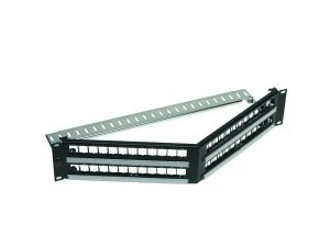 Patch Panel 19 panel krosowy, niewyposażony, modularny na 24xRJ45, ekranowany, 1U, czarny, wymienne pola opisowe 11305113