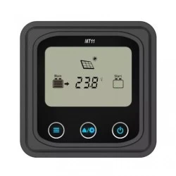 Seria paneli sterujących MT to akcesoria kompatybilne z kontrolerami serii DuoRacer. Za ich pomocą można monitorować dane pracy i status kontrolera. Zdalny miernik umożliwia przeglądanie parametrów kontrolera, ustawianie typu baterii i jednostki temperatury oraz resetowanie generowanej energii. Jest idealny do zastosowań w przyczepach kempingowych, kamperach, łodziach, itp.