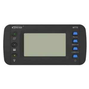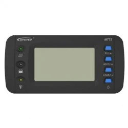 Monitor MT75 - miernik cyfrowy z wyświetlaczem LCD, wskazuje informację systemu, wykryte błędy i aktualne parametry pracy. Miernik MT75 przeznaczony jest do pracy z kontrolerami typu MPPT XTRA-N,TRIRON,Tracer-AN Tracer-BN, IPower-Plus, SHI Obsługuje zarówno najnowszy protokół komunikacyjny jak i zaawansowane technologie zarządzania napięciem w obsługiwanych kontrolerach. Możliwośc kontroli pracy regulatora i przetwornicy jednocześnie