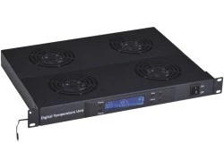 Panel wentylacyjny przeznaczony do montażu w szafach rackowych w standardzie 19 cali z czterema punktami mocowania. Panel wyposażony jest w termostat oraz cyfrowy moduł sterowania temperaturą. Czujnik temperatury z kablem o długości 45 cm, pozwala na umieszczenie czujnika w obrębie panela.