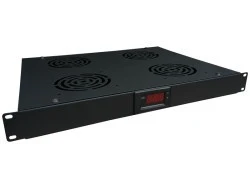 Panel wentylacyjny przeznaczony do montażu w szafach rackowych w standardzie 19 cali. Panel wyposażony jest w termostat oraz cyfrowy moduł sterowania temperaturą. Czujnik temperatury z kablem o długości do 1.5 m, pozwala na umieszczenie czujnika w dowolnym miejscu szafy. Możliwa jest regulacja temperatury uruchomienia wentylatora z dokładnością do 0,1°C.