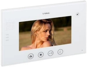 Plug & Play, Ultra-płaski monitor bezsłuchawkowy, głośnomówiący, Płynna regulacja parametrów monitora: jasności obrazu, głośności dzwonka i rozmowy, Dotykowe przyciski sterujące, Obsługa 2 stacji bramowych, lub 1 stacji i 1 kamery CCTV, Możliwość rozbudowy systemu o dowolne 3 dodatkowe panele wewnętrzne lub unifony marki VIDOS, Podgląd obrazu z bramofonu z możliwością włączenia dźwięku i otwarcia furtki, Sterowanie elektrozaczepem i bramą automatyczną, Funkcja interkomu i przekierowania rozmowy, Wbudowany mikrofon, Wbudowane głośniki, Komunikacja dwukierunkowa, Menu ekranowe OSD, W komplecie zasilacz przeznaczony do montażu na szynie DIN TS-35 |