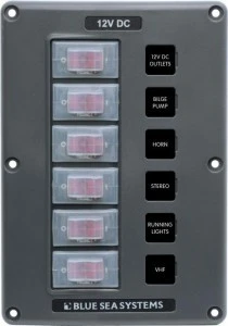 Panel Wyłączników Blue Sea – 6 obwodów, wodoodporny, szary