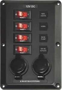 Panel Wyłączników Blue Sea BelowDeck – 4 obwody + 2 gniazda 12V