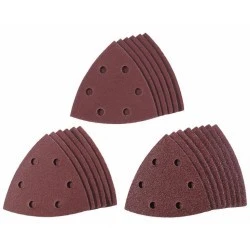 Zestaw 20 oryginalnych arkuszy ściernych Einhell Q-Stick Delta o wymiarach 93 x 93 x 93 mm to idealne rozwiązanie do precyzyjnego szlifowania narożników oraz małych powierzchni wykonanych z drewna lub metalu. Dzięki perforacji, arkusze te są przystosowane do pracy z urządzeniami wyposażonymi w system odsysania pyłu, co zapewnia czystość i komfort podczas pracy. Dzięki różnym ziarnistościom w zestawie, użytkownik ma możliwość dostosowania arkuszy do różnych etapów szlifowania, od zgrubnego usuwania materiału po finalne wygładzanie powierzchni. Mocne mocowanie na rzep umożliwia szybką i beznarzędziową wymianę arkuszy, co zwiększa efektywność pracy. Pasuje do wszystkich szlifierek delta Einhell oraz innych szlifierek delta z płytką szlifierską o wymiarach 90 mm, w szczególności: Einhell TC-DS 19, Einhell TC-DS 20 E