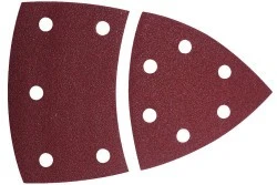 2 elementy: trójkątna nakładka ścierna 95 mm + bazowa nakładka ścierna korund. Pasuje do Bosch Prio, Bosch PSM 160 A, Bosch Ventaro, Einhell HES 160, Güde GTKS 315 315 30 3, Metabo FMS 200 Intec, Skil Octo