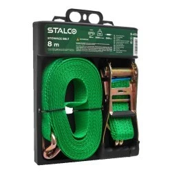 W czasie transportu akcesoriów ciężkich i wielkogabarytowych potrzebny będzie solidny pas do ładunków. Jest to akcesorium przeznaczone do spinania ze sobą kilku produktów i ustabilizowanie ich na pace. Sprawdza się także do mocowania konstrukcji bezpośrednio do uchwytów w części załadunkowej auta. Dzięki niemu można bezpiecznie przewozić różnego rodzaju ciężkie elementy. Pas do ładunków STALCO można zamocować za pomocą haka i zaciągnąć klamrą wyposażoną w mechanizm zapadkowy. Oba elementy są wykonane z mocnej stali węglowej i zabezpieczone przed korozją. Dodatkowo uchwyt pokryto warstwą tworzywa sztucznego, które poprawia komfort pracy szczególnie w czasie mrozów. Cały pas do ładunków jest wykonany z włókien poliestrowych. Materiał daje mu odporność na działanie czynników atmosferycznych. Jest też bardzo trwały, nie ściera się i nie ulega zerwaniu. Cała dwuczęściowa konstrukcja pasa ma długość 8 metrów. Może przenosić obciążenia do 5 ton, co umożliwia realizację najtrudniejszych zadań.