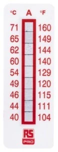 Paski testowe do pomiaru temperatury RS Pro, jednokierunkowe. W RS Pro dostępny jest szereg bezodwracalnych pasków testowych temperatury. Ten zakres łatwych do odczytania etykiet temperatury jest samoprzylepny i zapewnia bieżącą temperaturę z dokładnością +/- 1°C. Te paski testowe temperatury na stałe rejestrują najwyższą temperaturę osiągniętą przez etykietę. Charakterystyka i zalety:. ;ul> ;li>Te wskaźniki temperatury mogą być stosowane do większości metali i tworzyw sztucznych. ;/li> ;li>( ; 7799779 7799779 ) odczytuje temperatury w zakresie od 40°C do 71°C. ( ; 7799772 7799772 ) odczytuje temperatury od 77°C do 127°C. ( ; 7799776 7799776 ) odczytuje temperatury pomiędzy 132 °C i 182 °C. ( ; 7799785 7799785 ) odczytuje temperatury od 188°C do 249°C. ;/li> ;li>Rozmiar 51 mm x 18 mm ;/li> ;/ul>. Zastosowania. Etykiety temperatury mają różne zastosowania, takie jak: ;ul> ;li>Przemysłowe ;/li> ;li>Motoryzacja ;/li> ;li> Linie produkcyjne, ;/li> ;li>Badania i rozwój ;/li> ;/ul>. Dlaczego RS Pro?. RS Pro to nasza marka produktów wysokiej jakości, która zapewnia doskonałą jakość za dobrą cenę. Nasza szeroka gama produktów została zaprojektowana z myślą o spełnieniu wysokich standardów branżowych, co zapewnia niezawodne i solidne rozwiązania.