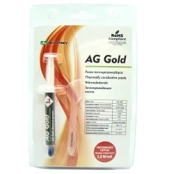 Pasta termoprzewodząca wykorzystywana jest najczęściej w elektronice. Odpowiedzialna jest za chłodzenie podzespołów komputera, zwiększając jego wydajność i jakość. Ponadto powiększa powierzchnię przewodzenia ciepła. AG Gold to wysokiej jakości pasta termoprzewodząca.Dzięki zawartości złota, jej przewodność cieplna jest 3 razy wyższa, niż w przypadku normalnych past. Pozwala to na obniżenie temperatury procesora o około 6 stopni, nawet bez zmiany radiatora. Pasta stanowi najlepszą alternatywę dla overclockerów.