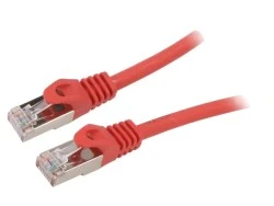 Patch cord S/FTP 6a drut Cu LSZH czerwony 15m 27AWG PP6A‑LSZHCU‑R‑15M