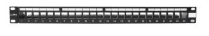 Patch Panel 19 panel krosowy, niewyposażony, modularny na 24xRJ45, ekranowany, 1U, czarny, wymienne pola opisowe 11305113