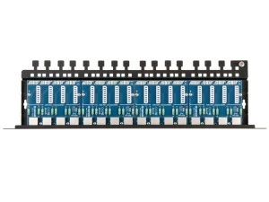 Patch panel składa się z czterech modułów PTU-54-PRO/PoE, zamontowanych w obudowie standardu RACK 19" z możliwością ich łatwej wymiany. Seria 5xx to nowo zaprojektowane moduły, posiadające lepsze parametry transmisyjne i obciążeniowe względem wcześniejszych serii, co zapewnia stabilniejszą pracę oraz mniejsze przesłuchy sygnału.