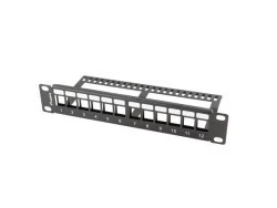 Pusty panel przeznaczony jest do obsadzenia modułami keystone, zarówno sieciowymi RJ45, RJ11 i RJ12 jak audo-video-data np. HDMI, USB, F, BNC itp.