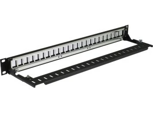 Ekranowany panel krosowy 24x DataGate 1U z półką kablową do samodzielnej konfiguracji (niewyposażony) nie zawiera modułów DataGate. Instalator zamawia moduły oddzielnie dopasowując ich ilość do aktualnych potrzeb
