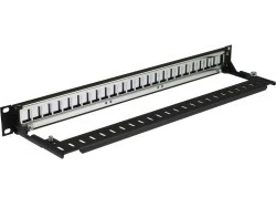 Panele krosowe 24x Keystone 1U z półką kablową do samodzielnej konfiguracji (niewyposażone) nie zawierają modułów Keystone. Instalator zamawia moduły oddzielnie dopasowując ich ilość do aktualnych potrzeb.