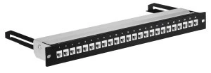 Uniwersalny panel krosowy wyposażony jest w 24 puste porty. Porty przeznaczone są do montażu modułów RJ45 typu keystone w różnych konfiguracjach. Jest integralny z gniazdami Cat. 5E, Cat. 6, Cat. 6A.