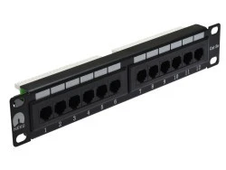 - Patch panel wykonany w standardzie 10”.
