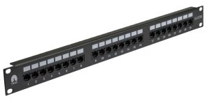 Panel krosowy 19" - 1U, UTP z półką (tzw. leżący), spełniający wymagania kategorii 5E.