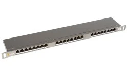 Patch Panel Solarix 24xRJ45 CAT5E STP z wspornikiem nierdzewka 0,5U SX24HD‑5E‑STP‑SL