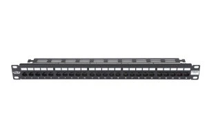 Patch panel pusty 24 port 1U 19 z organizerem do modułów Keystone czarny LANBERG