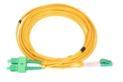 Patchcord (ang. przewód połączeniowy) jednomodowy o podwójnie połączonych włóknach. Długość 1,5 metra i średnica kabla 3 mm. Zakończony złączami SC/APC-LC/APC. Używany w urządzeniach podpiętych do sieci światłowodowych.