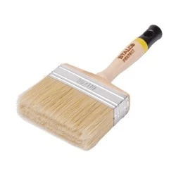 Pędzel tapetowy UNIVERSAL to produkt potrzebny przy pracach remontowych i wykończeniowych. Jest dostosowany do charakterystyki farb emulsyjnych i emalii. Sprawdza się również do aplikacji klejów pod tapety. Z łatwością można nakładać te preparaty, a także usuwać z włosia pozostałości farby po zakończonej pracy. Szeroka szczotka i długie włosie umożliwiają malowanie dużych powierzchni. Narzędzie sprawdza się też przy podłożach strukturalnych. Pędzel tapetowy STALCO Perfect jest wykonany z drewna, a włosie z trzonkiem łączy taśma stalowa. Produkt jest wykonany z myślą o długotrwałym intensywnym użytkowaniu. Regularnie myty pozostanie użyteczny przez długi czas. W ofercie STALCO znajdują się uniwersalne pędzle tapetowe w pięciu wariantach o szerokości włosia od 90 do 150 mm.