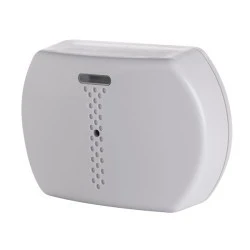 Bezprzewodowa czujka zbicia szyby z dwukierunkową komunikacją PowerG, przeznaczona do montażu wewnątrz pomieszczeń.