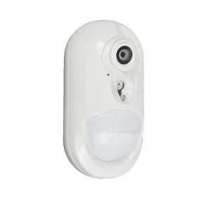 Czujka bezprzewodowa PIR z wbudowaną kamerą i komunikacją dwukierunkową Power G i szerokokątnym zasięgu detekcji: 12 x 12m i 90 stopniowym kątem widzenia, przeznaczona do montażu wewnątrz pomieszczeń.