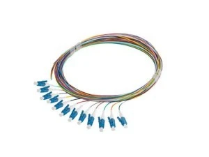 Komplet 12 pigtaili światłowodowych SM OS2 wyposażonych w złącze LC/UPC, o długości 2m i średnicy 0.9mm.