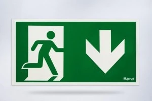 Piktogram PS26 125x250 strzałka dół człowiek w drzwiach logo awex (ISO7010)