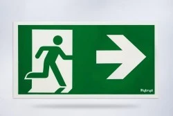 Piktogram PS25 125x250 człowiek w drzwiach strzałka prawo logo awex (ISO7010)