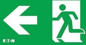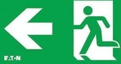 Piktogram PS24 125x250 strzałka lewo człowiek w drzwiach logo awex (ISO7010)